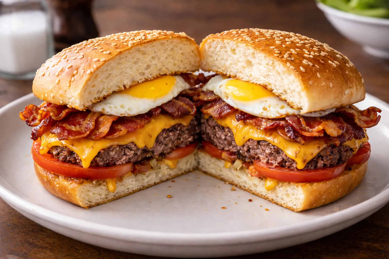 Carne, cheddar, panceta y huevo